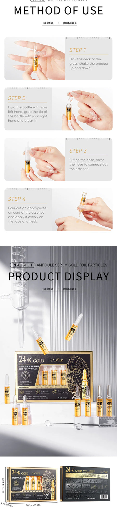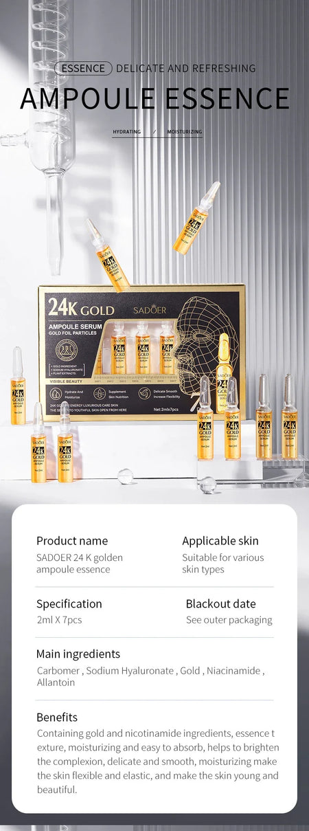 5,【Widely Used】This facial 24k ampoule essence is also suitable for all skin types, whether it is men or women, oily or dry skin can use it with confidence.