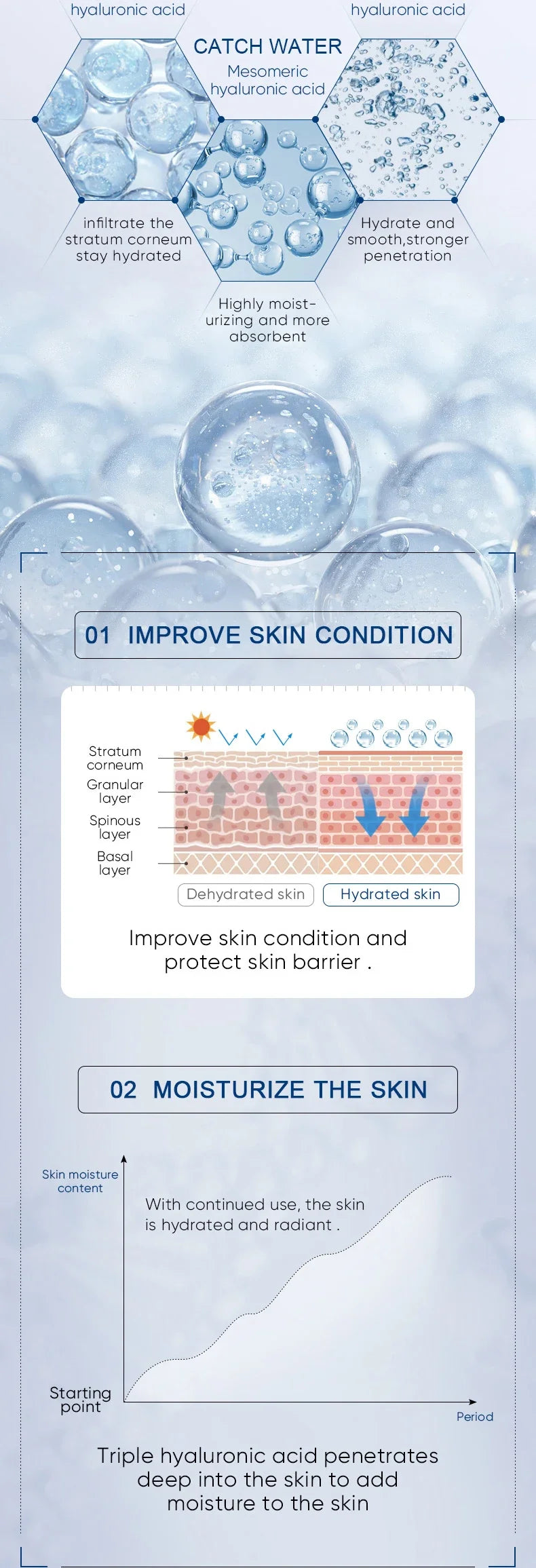 3,【Fast Absorption】Our Hyaluronic Acid Face Essence which is non-greasy can absorb quickly and promotes tightened, radiant skin. You can rest assured to buy.