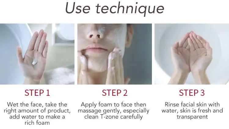STEP1:Wet the face first,take the right amount of product,add water to make a rich foam
